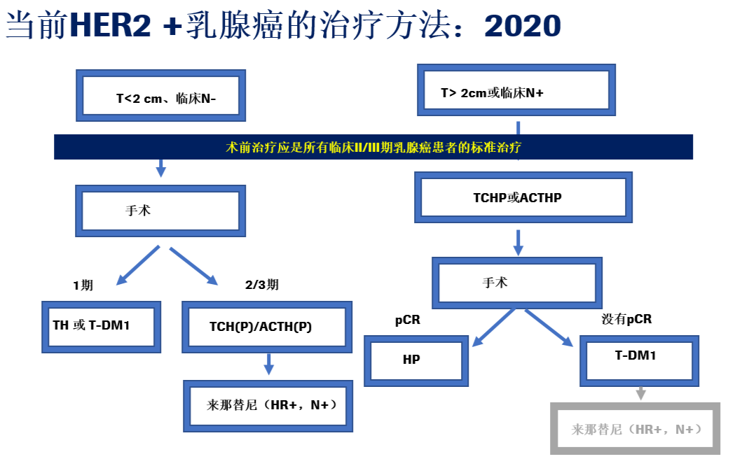 最后我们再来回顾一下当前HER2阳性乳腺癌的治疗方法: