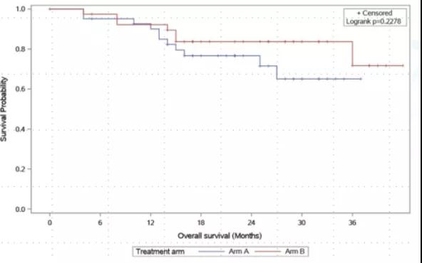 4、在Ⅱ期研究入组样本量方面,由于JACOB研究[3]阴性结果提前关闭研究,实际入组仅81例,要小于预期100例;样本量的减少,也会影响将来DFS和OS的差异;因此未来我们可能不仅需要看两组之间是否有统计学P值的差异,更要看这种差异是否具有临床的实际意义。