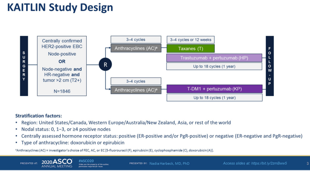 郭磊教授:APHINITY研究提示我们对于肿瘤负荷较大的患者,术后双靶治疗患者会有较多获益。但对于这部分患者,再加用T-DM1治疗能否改善患者预后,目前还缺乏数据支持。但PHERGain研究提示我们,可以在新辅助治疗时通过PET-CT等方式早期对患者进行评估预测,再根据结果对患者进行升降阶梯治疗,其预后可能更好。