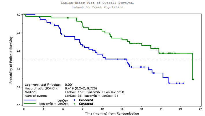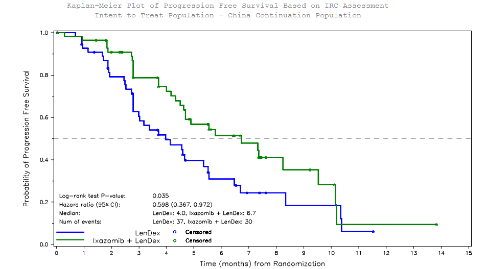 在内容设置方面,本次论坛也是亮点颇多。首先,本次论坛增加了“走进中国循证”的环节,重点展示了我国目前正在开展的原创性研究,并且根据现有数据进行了相关的探讨和交流,而并非复习已发表文献和欧美国家的一些数据。近年来,越来越多的中国原创性研究在全世界范围内贡献出重要的数据,例如TOURMALINE-MM1中国延展研究显示:①IRd组较安慰剂组而言,其PFS显著改善了67%,Rd组与IRd组的中位PFS分别为4个月和6.7个月(图1) 。②IRd组较安慰剂组OS显著改善了139%,Rd组与IRd组的中位OS分别为15.8个月和25.8个月(图2)。这些数据为伊沙佐米在欧洲的获批上市提供了重要价值。