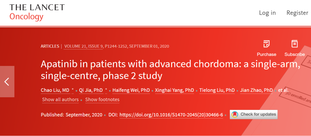 《肿瘤瞭望》:此次长征团队开展的这项阿帕替尼单药治疗复发/难治性脊索瘤的Ⅱ期试验,取得了怎样的喜人研究成果,能够快速登顶国际权威期刊《柳叶刀肿瘤学》?
