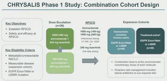 临床试验的第一阶段确定了联合用药的推荐剂量,对于体重低于80公斤的患者,推荐剂量为1050毫克Amivantamab和240毫克Lazertinib。这产生了EGFR-TKI常见但通常可控的毒性,包括皮疹、口腔炎和甲基炎。