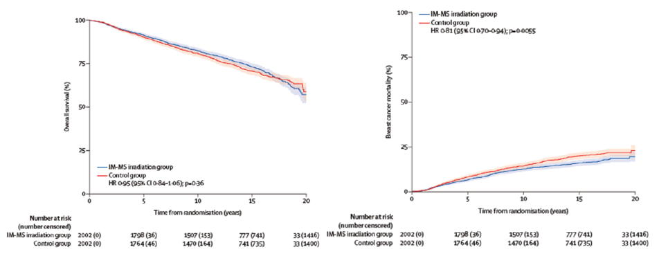 结论:该研究随访15年的结果表明,在I-III期乳腺癌中,通过IM-MS照射可以显著降低乳腺癌死亡率和任何乳腺癌复发率。然而,这并不能转化为整体生存率的提高。