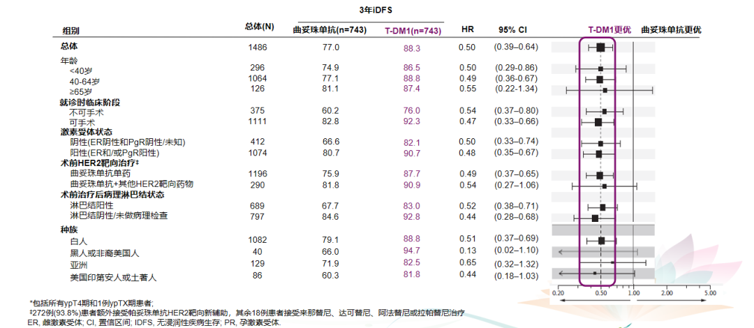 TRAIN-2是一项评估有无蒽环类化疗药物联合双靶用于II-III期HER2阳性乳腺癌患者新辅助治疗的临床研究。随访3年结果显示,有无蒽环类药物对其主要终点pCR、次要终点患者3年EFS和OS均无显著差异,亦不受激素受体状态和淋巴结转移数目影响。