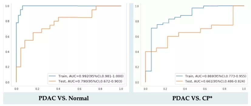 图3. 初步模型:鉴别PDAC血浆与正常对照组和慢性胰腺炎