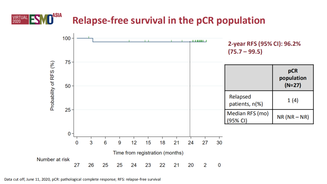 1、BLASST-1研究纳入符合RC资格的顺铂耐受的MIBC患者(Ct2-T4a,N≤1,M0),Nivolumab联合GC方案化疗,病理非肌层侵袭率为66%(pCRR: 49%)。
