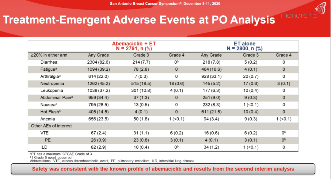 [2]Joyce O’Shaughnessy, et al. Primary Outcome Analysis of Invasive Disease-free Survival for MonarchE: Abemaciclib Combined with Adjuvant Endocrine Therapy for High Risk Early Breast Cancer. SABCS 2020, abstract GS1-01.
