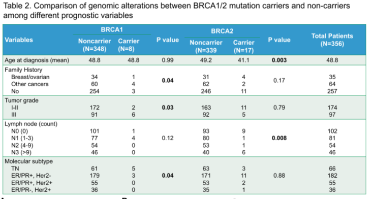 我们的结果显示,通过600个基因的PredicineATLAS panel检测到的乳腺癌患者的有害突变频率较高的几个基因是BRCA2、BRCA1、ATM和RAD50。与已发表的数据一致,有肿瘤家族史及肿瘤级别高的患者检测到BRCA1突变的概率更高。BRCA1在三阴性乳腺癌中突变频率更高。手术时淋巴结转移多的患者中BRCA2突变的频率更高。通常情况下,生存在不同亚型中有所不同,ER/PR-,HER2+的总生存(OS)最差。有肿瘤家族史的HER2+患者生存结果更差。