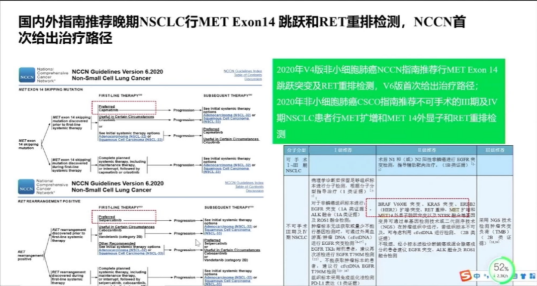 从NCCN 2020第四版中新增了不靶点的检测,包括MET的跳读和RET重排。