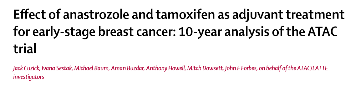 2010年,《柳叶刀》杂志上再次报道了ATAC临床试验随访120个月的最终结果。