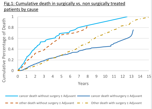 2、治疗方法复杂多样,但总生存不高,由于治疗相关副反应导致的死亡率却增加,大多数为非乳腺癌死亡。