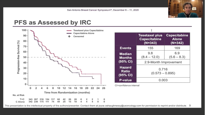 SABCS 2020︱邸立军教授:Tesetaxel与卡培他滨联合应用于HR+转移性乳腺癌,显著改善PFS,期待该方案OS结果