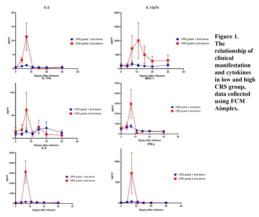 #200.Detecting 24 Kinds of Cytokines Via Flow Cytometry Aimplex Kit Is an Effective Way to Monitor CRS after CAR-T Cells Infusion