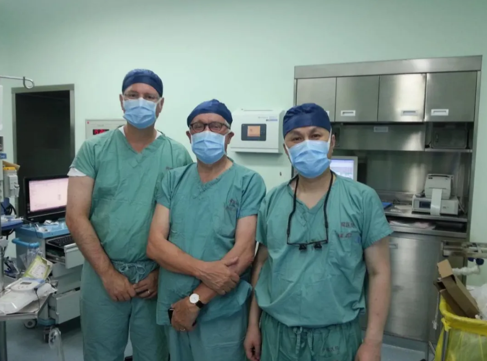 在陈海泉的努力下,复旦大学附属肿瘤医院胸外科团队也已经走进国际专家的视野。2013年,AATS秘书长David R. Jones教授在走马上任MSKCC胸外科主任后的第一年,就来到了复旦大学附属肿瘤医院交流访问,同行的还有欧洲胸心外科学会(EACTS)前任主席、电视纵膈镜发明者Toni. Lerut教授。陈海泉和团队演示了一场精彩的双袖状肺叶切除术,给他们留下了深刻的印象。