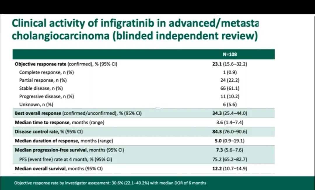 图2. Infigratinib在晚期/转移性胆管癌患者中的临床活性