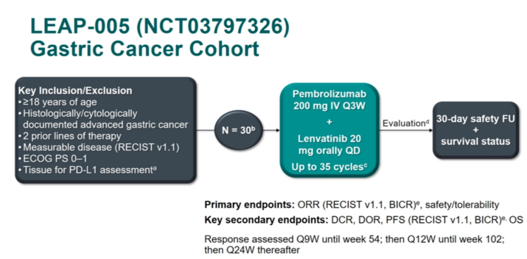 LEAP-005研究:仑伐替尼+帕博利珠单抗在既往治疗过的晚期实体瘤患者中的Ⅱ期多队列研究——来自胃癌队列的结果