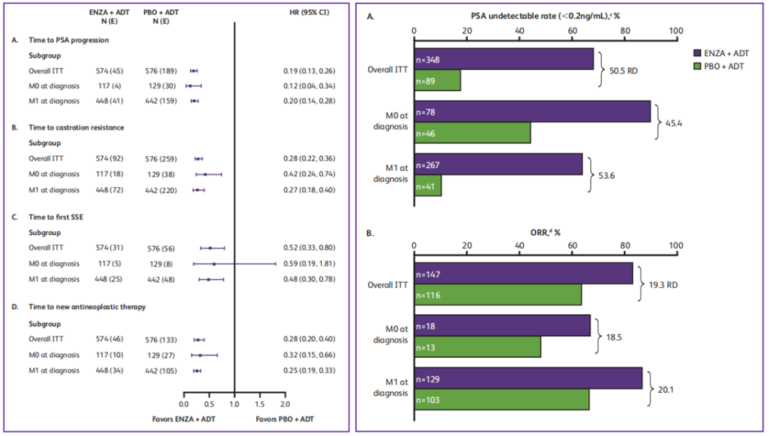 [1]Efficacy of enzalutamide (ENZA) plus androgen deprivation therapy (ADT) in men with de novo (M1) metastatic hormone-sensitive prostate cancer (mHSPC) versus progression to mHSPC (M0): Post hoc analysis of the phase III ARCHES trial.ASCO GU 2021, Abstract 102