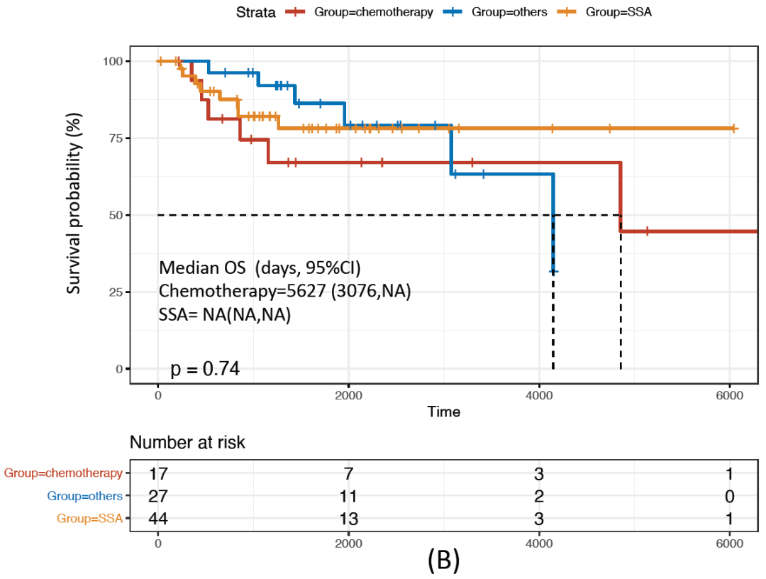 该研究结果表明,SSA术后辅助治疗可显著减少具有G3 pNET、胰管扩张和胰周神经浸润这三种危险因素患者的复发(P< 0.001),并延长生存期(P= 0.021)。