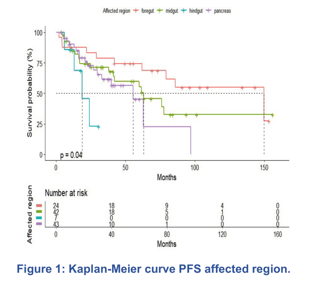 研究结果显示:尽管中位PFS仅为4.4个月,但55% G3 NET患者在SSA单药治疗期间病情稳定, 有1/3的患者有超过8个月的病情稳定期,3名患者在SSA单药治疗中至少延长了24个月的病情稳定期。