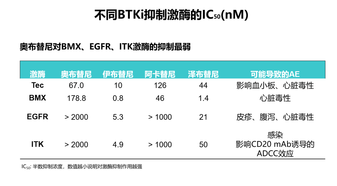 图2.不同BTK抑制剂抑制不同激酶的IC50