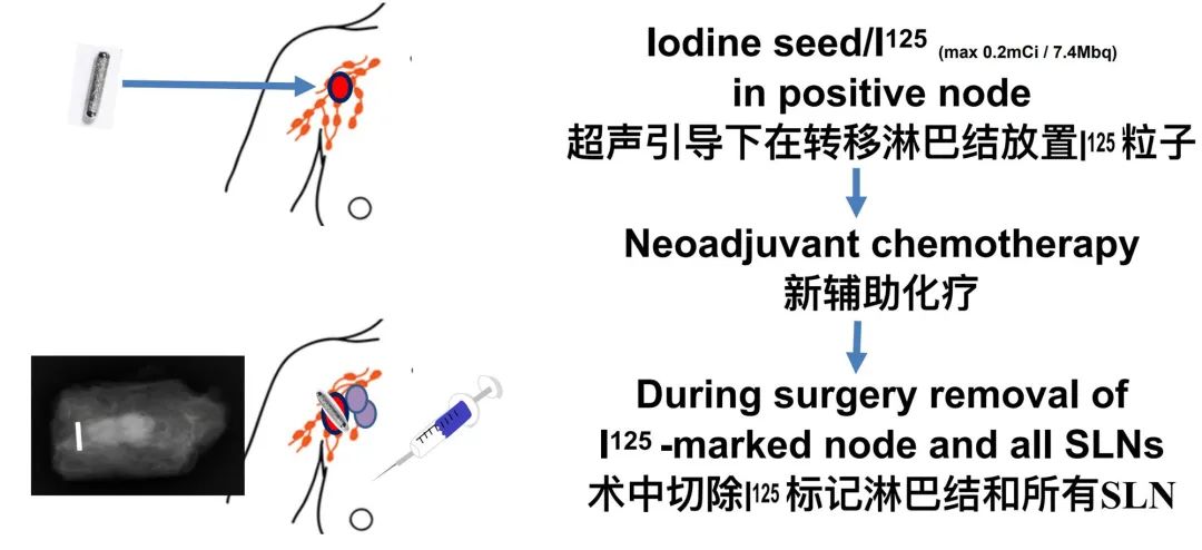 2020年SABCS会议报道了荷兰的前瞻性、多中心、大样本的RISAS试验结果。RISAS研究在初始腋窝阳性患者新辅助化疗前放置I125粒子,新辅助化疗后采用靶向腋淋巴结切检(TAD)技术进行腋窝评估并进行腋窝清扫术,以验证其准确性。