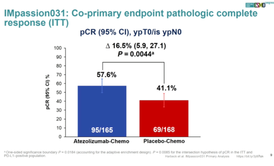 图14 IMpassion031研究ITT人群的pCR(ypT0/Tis ypN0)率