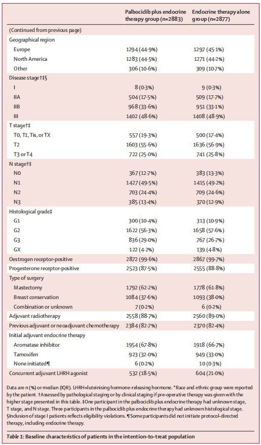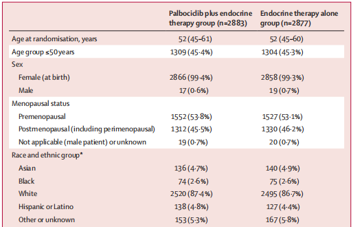 第二,从入组人群特征上看,monarchE研究入组人群更高危可能是其获得阳性结果的原因之一,而PALLAS研究入组人群相对复发风险较低,似乎提示高危患者才可能会从CDK4/6抑制剂联合AI治疗中获益。