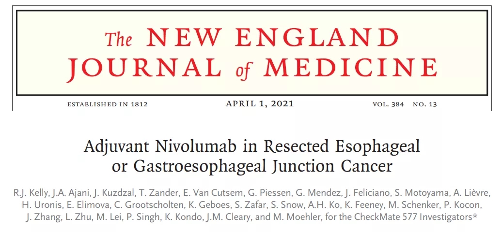 Ronan J. Kelly, et al. Adjuvant Nivolumab in Resected Esophageal or Gastroesophageal Junction Cancer.  April 1, 2021. N Engl J Med 2021; 384:1191-1203