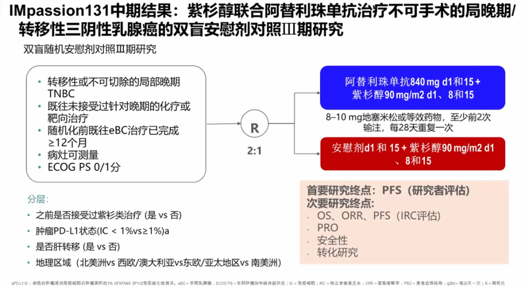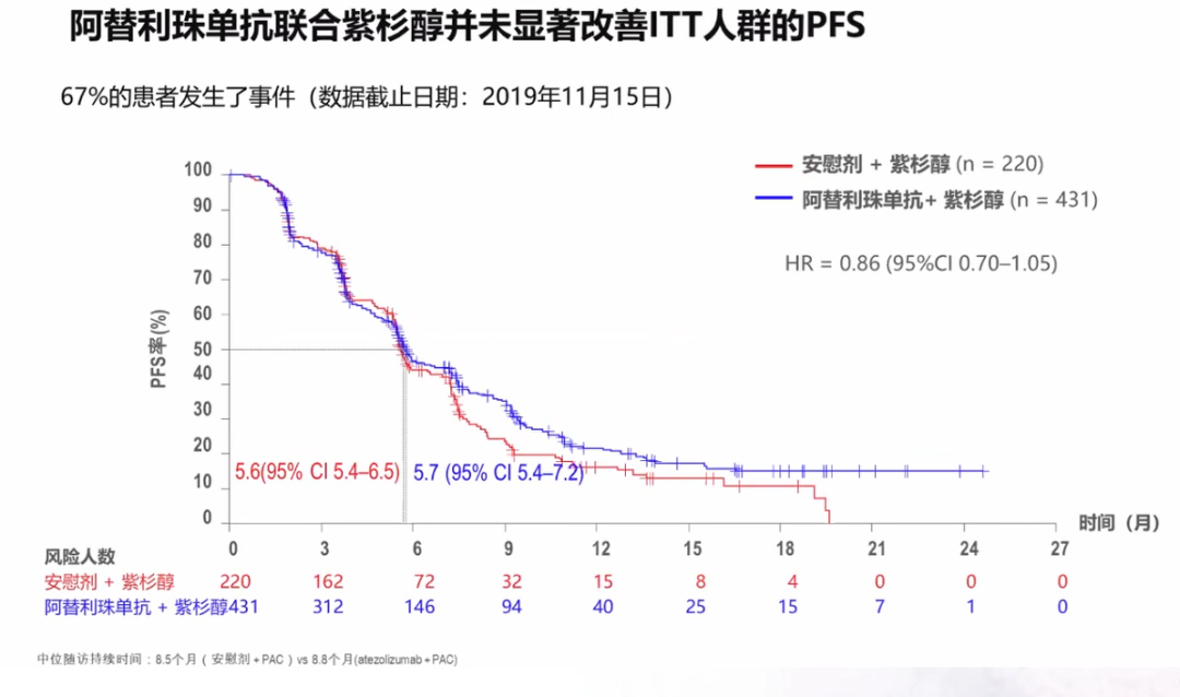 而与之设计相似的IMpassion 131研究却得到了阴性结果,无论在PD-L1阳性人群还是在总人群中,均未看到患者获益,还应进行更多相关探索。