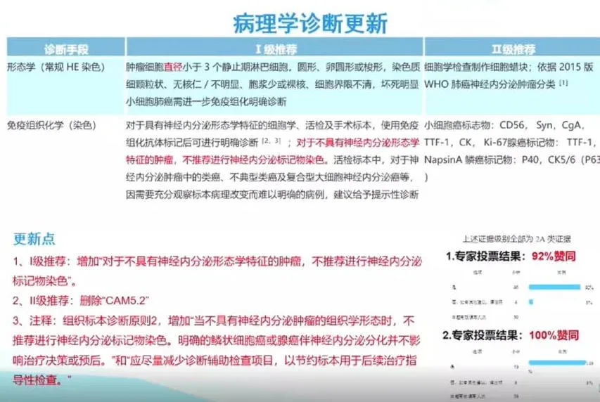 I级推荐新增“对于不具有神经内分泌形态学特征的肿瘤,不推荐进行神经内分泌标志物染色”。