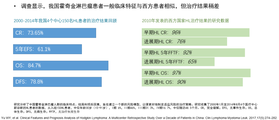 图1:我国霍奇金淋巴瘤患者一线治疗后疾病进展比例高,影响生存预后