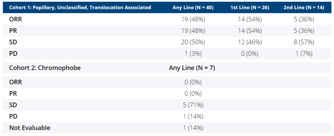 表1. HCRN GU16-260研究中nccRCC的疗效数据
