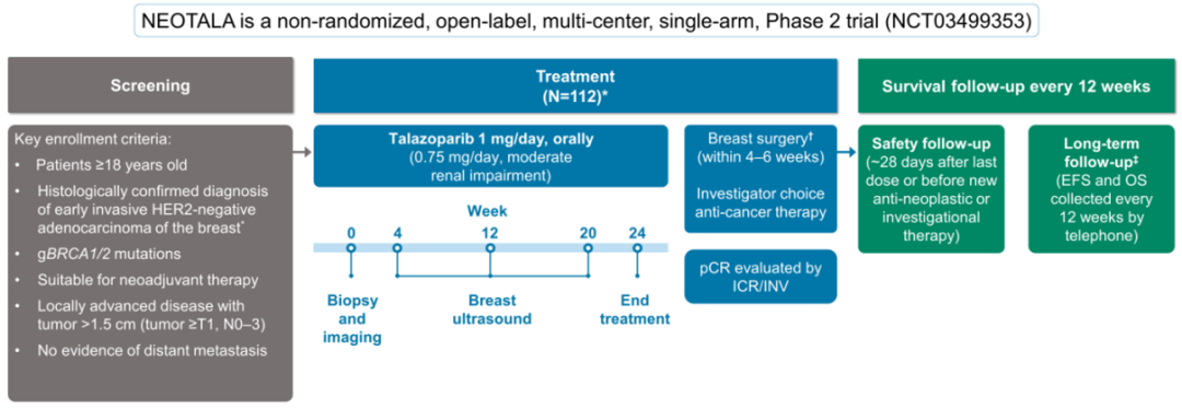 NEOTALA:Talazoparib用于新辅助治疗胚系BRCA1/2突变的早期HER2-乳腺癌的Ⅱ期研究