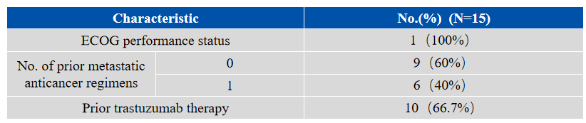 研究结果:截至2021年1月4日,共有15名患者(Ⅰ级5名患者,L1级6名患者,L2级4名患者)进入Ⅰb期研究并接受研究治疗。其中6名患者在晚期接受了系统性治疗,10名患者曾接受过曲妥珠单抗治疗。最常见的3/4级不良事件包括中性粒细胞计数减少(n=6),白细胞计数减少(n=4),口腔炎(n=4)和腹泻(n=3)。3名患者(Ⅰ级2名,L1级1名)经历过DLT,均为3级口腔炎。在15名患者中,7名患者(46.7%)获得了确认的部分缓解(1名Ⅰ级患者,3名L1级患者,3名L2级患者),7名患者(46.7%)病情稳定。根据DLT和临床疗效,吡咯替尼320 mg/d,SHR6390(达匹西利)125mg/d,来曲唑2.5 mg/d被宣布为RP2D。
