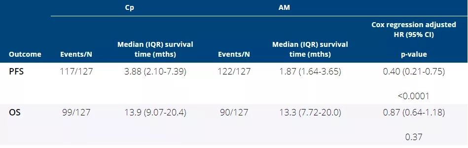 方法:在6个周期5FU/LV、奥沙利铂(FOLFOX)联合帕尼单抗的诱导治疗后,将RAS TW mCRC患者以1:1的比例随机分配应用5FU/LV联合帕尼单抗或单用5FU/LV维持治疗。主要终点为PFS(无进展生存:从随机化直到疾病进展或死亡的时间)。试验被设计需要有218个PFS事件,旨在证明5FU/LV联合帕尼单抗相较于5FU/LV单用的优越性(风险比[HR]=0.75,效力达到80%,显著性水平达到10%才具有统计学意义)。次要终点包括总生存(OS)、诱导治疗和维持治疗的客观缓解率以及生活质量。