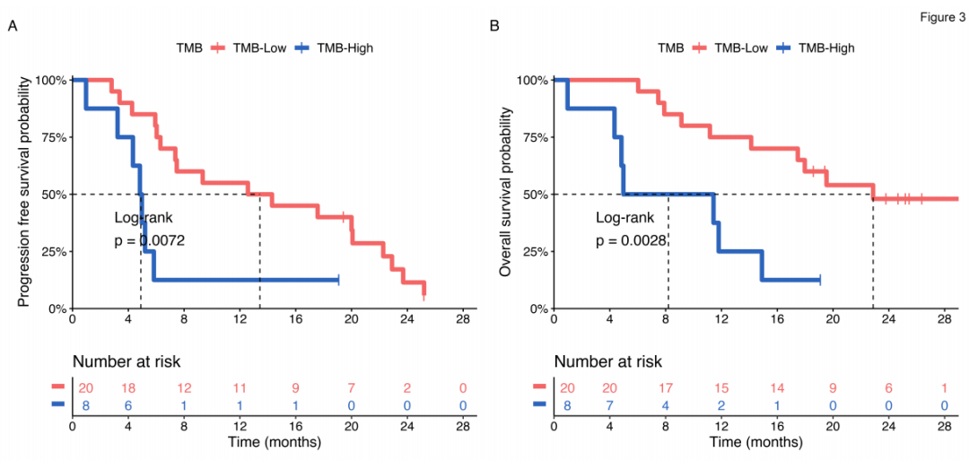 图1. 总体人群高TMB和低TMB患者的PFS和OS