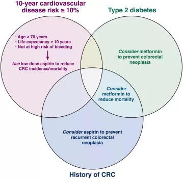 对于有CRC病史的患者,临床医生应考虑使用阿司匹林来预防复发性结直肠肿瘤。