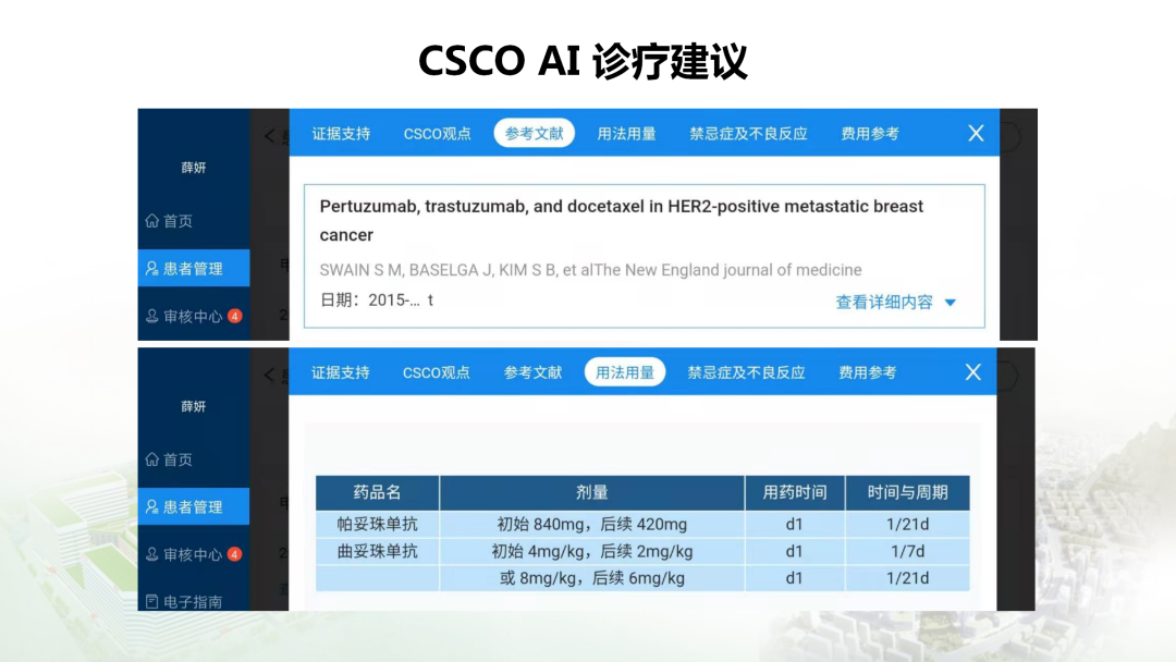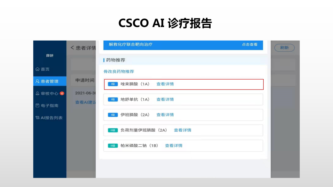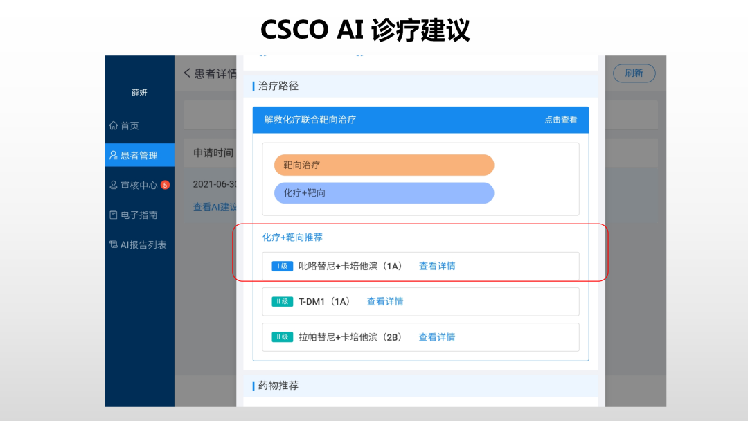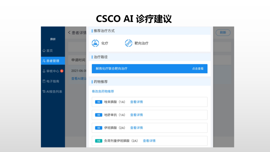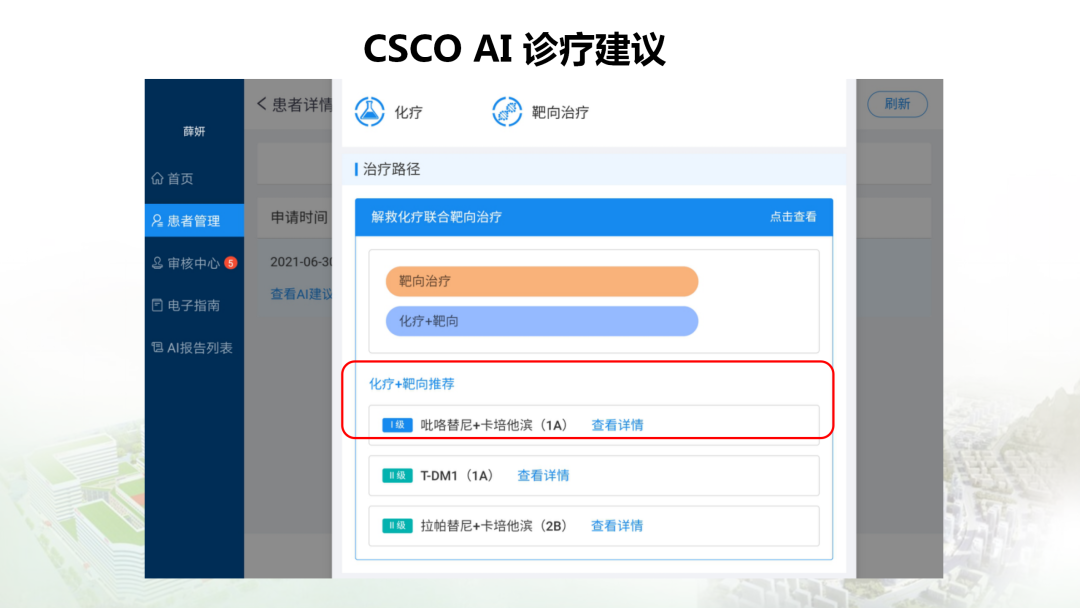 编者按:人工智能被称为第四次工业革命,在CSCO的不懈努力下,CSCO AI智能决策系统(下文简称CSCO AI)成功应用于临床。其通过中国的指南、中国的数据、中国的计算、中国的技术解决中国肿瘤患者的问题,引导医生规范决策,使更多的中国肿瘤患者获益。BOA/BOC 2021 China大会中,西安国际医学中心肿瘤医院薛妍教授分享了三例CSCO AI助力HER2阳性晚期乳腺癌患者解救治疗决策的病例,人工智能引领诊疗规范,未来已来。