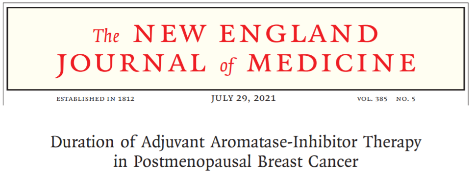 [2]Goodwin PJ. Extended Aromatase Inhibitors in Hormone-Receptor-Positive Breast Cancer. N Engl J Med. 2021;385(5):462-463. doi:10.1056/NEJMe2109356