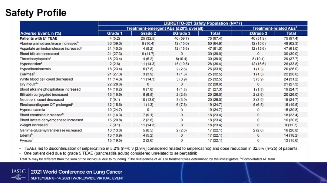 WCLC2021丨LIBRETTO-321验证RET抑制剂Selpercatinib在中国人群的疗效和安全性