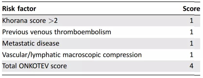 用于门诊癌症患者VTE评估的ONKOTEV评分