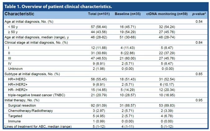 表1:101名复发、转移性乳腺癌患者基线临床特征