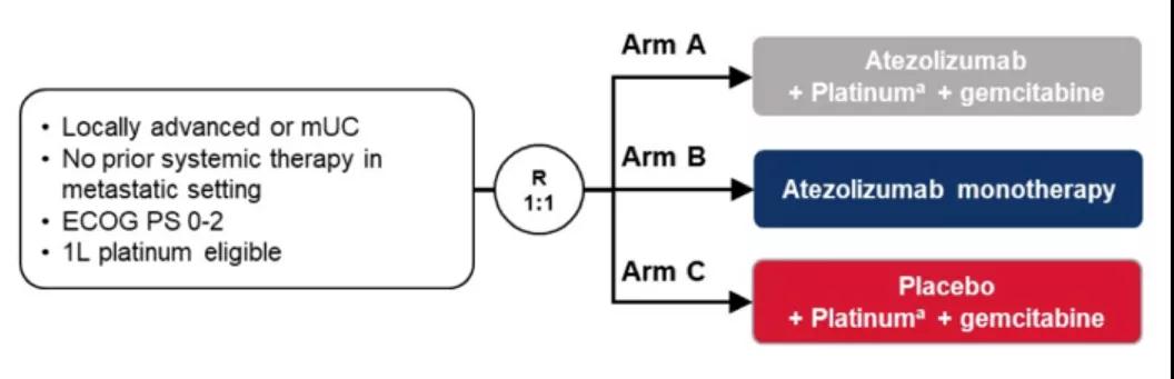 III期IMvigor130研究旨在明确阿替利珠单抗(抗PD-L1)单药或联合化疗(铂类+吉西他滨)用于mUC(n=1200)一线治疗的疗效和安全性。