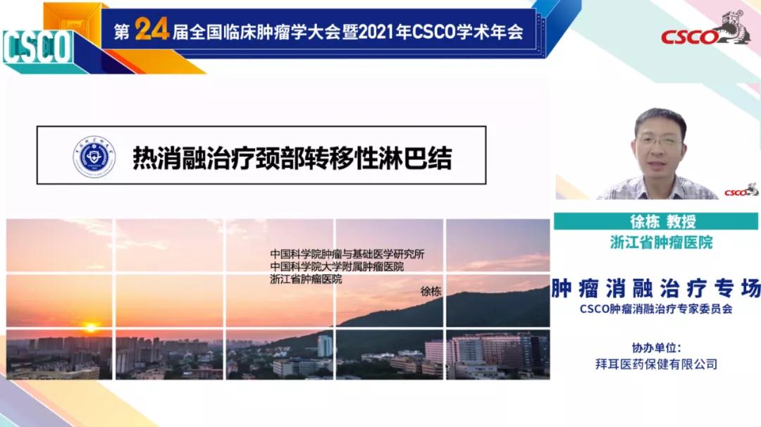 编者按:2021年9月25-29日,第二十四届全国临床肿瘤学大会暨2021年CSCO学术年会如约而至,大会主题为“聚焦创新研究,引领原创未来”。28日,肿瘤消融治疗专场精彩呈现,中国科学院大学附属肿瘤医院(浙江省肿瘤医院)徐栋教授分享了热消融治疗颈部转移性淋巴结的注意事项与典型病例,为临床诊疗带来思考。