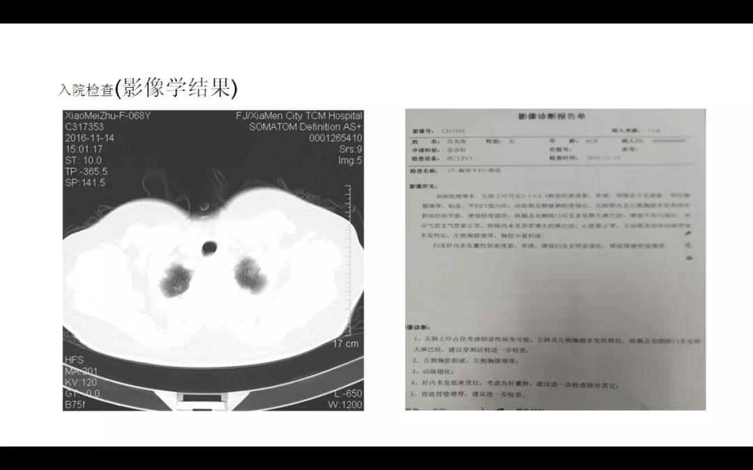 患者女性,73岁,主诉:确诊“左肺腺癌”4年余,七线姑息靶向治疗十周期后。