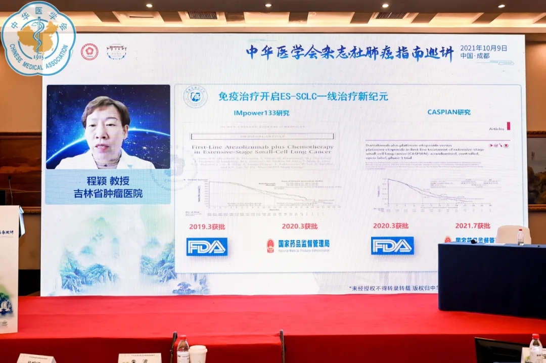 吉林省肿瘤医院程颖教授的报告聚焦小细胞肺癌(SCLC)的治疗进展,具体介绍了最近发布的SCLC一线治疗、局限期SCLC治疗、复发性SCLC和小细胞肺癌精准治疗的进展。