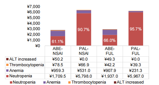 • 哌柏西利+NSAI的费用比阿贝西利+NSAI高71.5%(319.8元vs. 186.5元);
