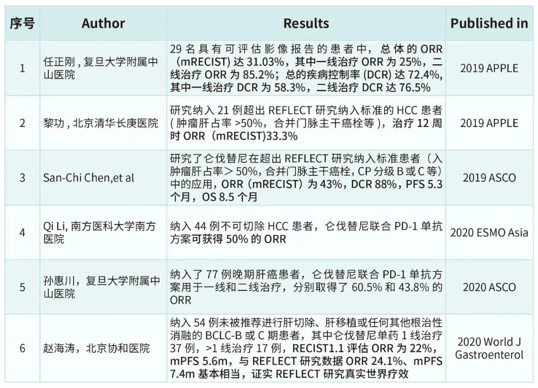▽多项已报道的仑伐替尼真实世界研究