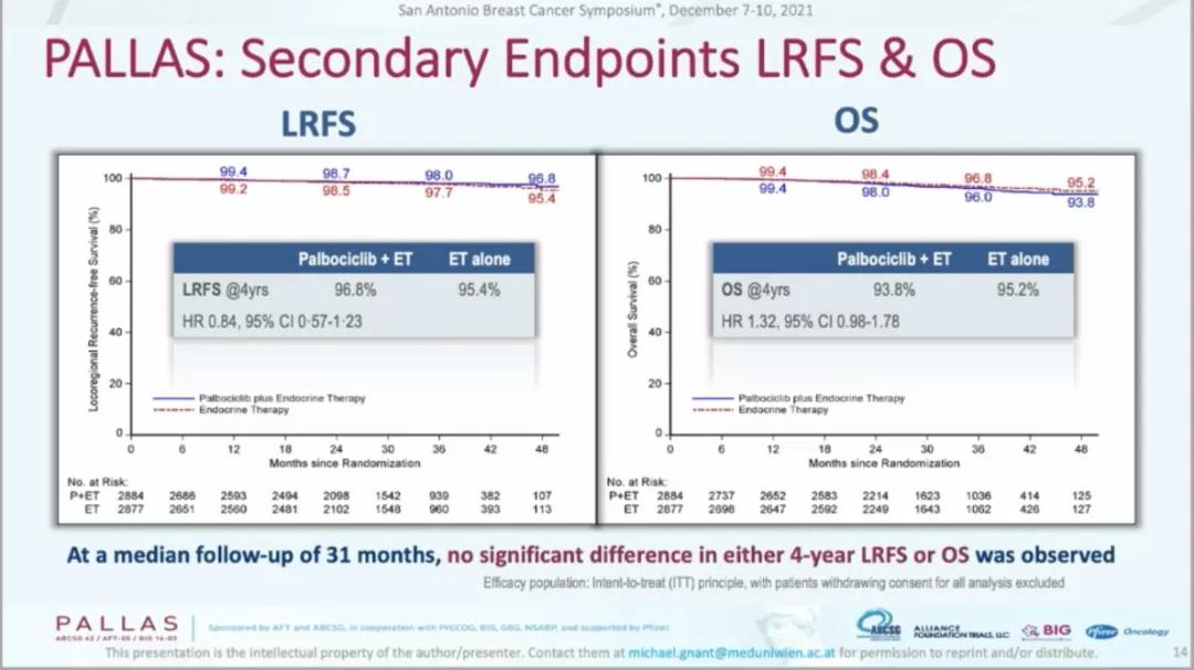 [2] Gnant Michael, Dueck Amylou C, Franta Sophie et al. Adjuvant Palbociclib for Early Breast Cancer: The PALLAS Trial Results (ABCSG-42/ AFT-05/BIG-14-03).[J] .J Clin Oncol, 2021, 21.02554.