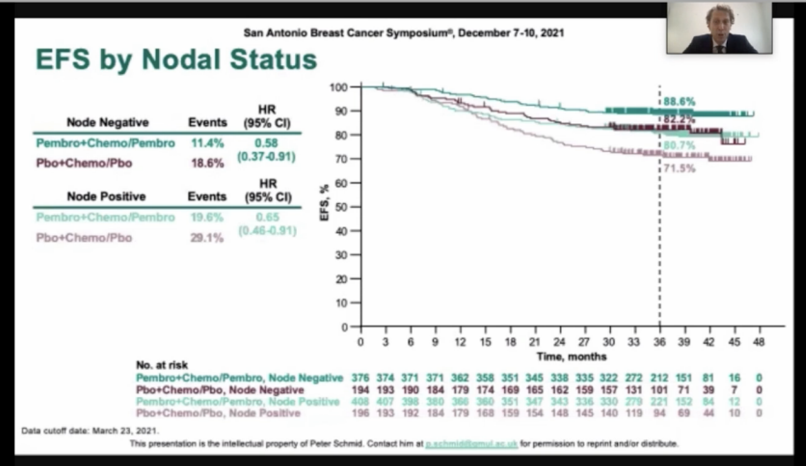 KEYNOTE-522研究:早期三阴性乳腺癌中新辅助pembrolizumab联合化疗对比安慰剂联合化疗后,序贯pembrolizumab对比安慰剂进行辅助治疗的亚组分析和EFS事件分析